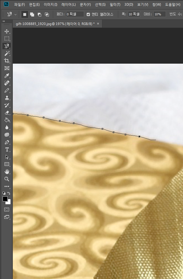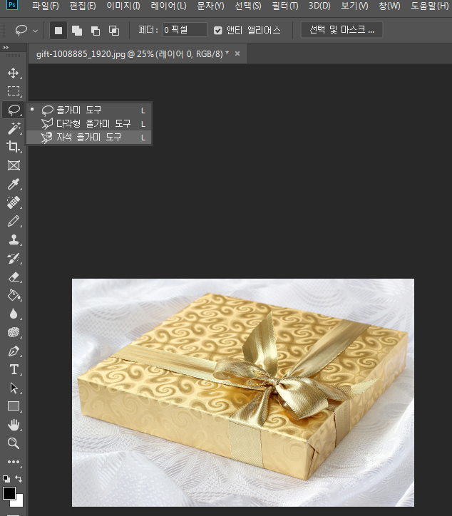 배경이 단색이거나 대상에 직선이 많은 복잡하지 않은 단순한 형태일때 쓰면 좋은 방법입니다. 복잡하지 않은 이미지는 흰배경에 선물상자를 쓰겠습니다.