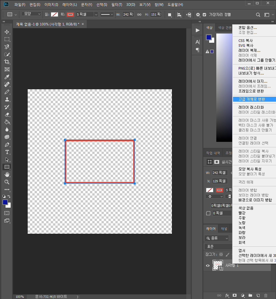 1-2. 사각형 레이어를 고급개체로 만들어 줍니다. 고급개체가되면 사각형 내부의 이미지만 바꿀 수 있습니다.