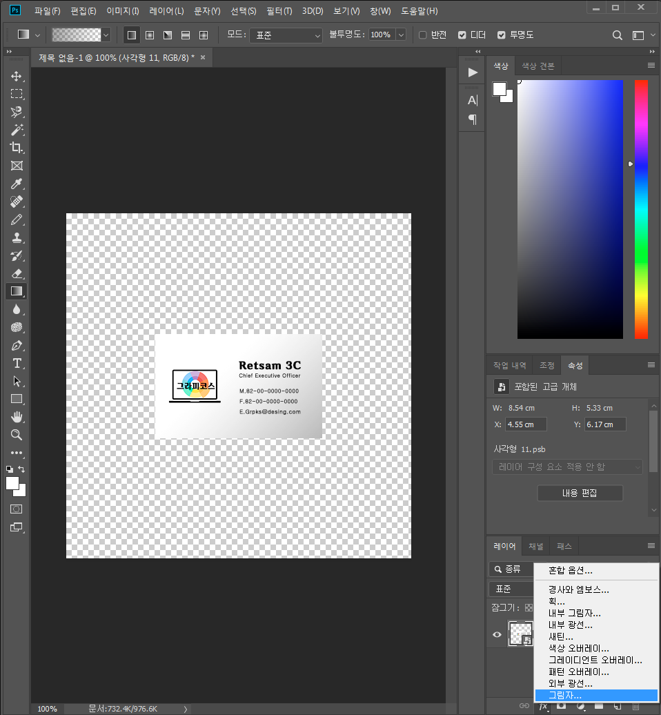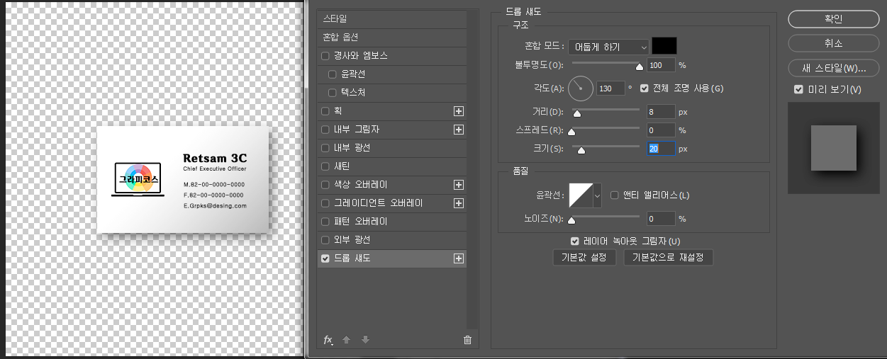 레이어 스타일 그림자 효과에 대한 더 자세한 설명은 여기서 보시면 됩니다.