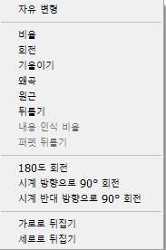 도형을 클릭한 상태에서 마우스 우클릭을 한 후 원하는 회전이나 뒤집기, 자유변형을 합니다.