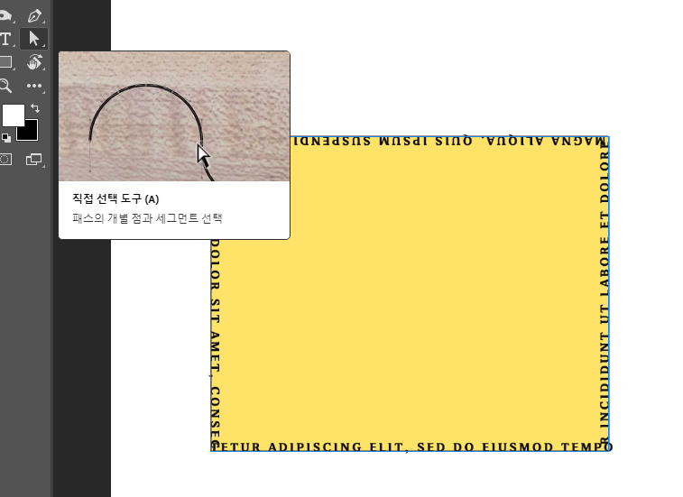 직접선택툴(A)를 누른 상태에서 마우스 포인터를 변경하면 글자도 변경가능합니다.